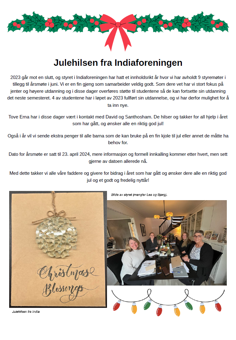 Indiaforeningens Kontonummer: 0539 33 85865 Facebook: Indiaforeningen